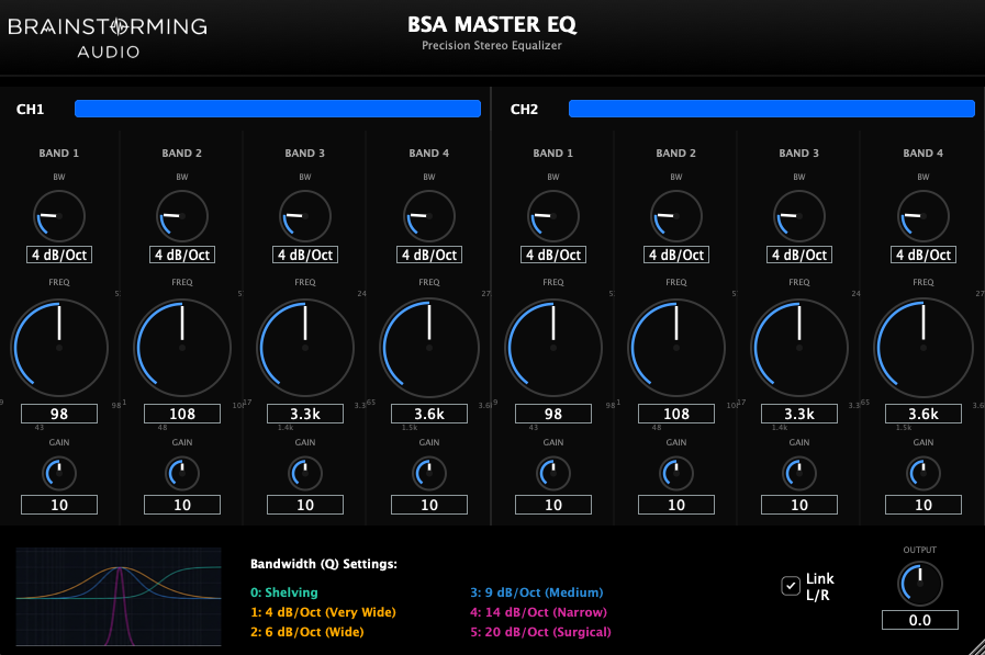 LINK L/R: When enabled (checked), any parameter change made on Channel 1 is automatically mirrored to Channel 2, and vice versa. This ensures perfect stereo synchronization for mastering.